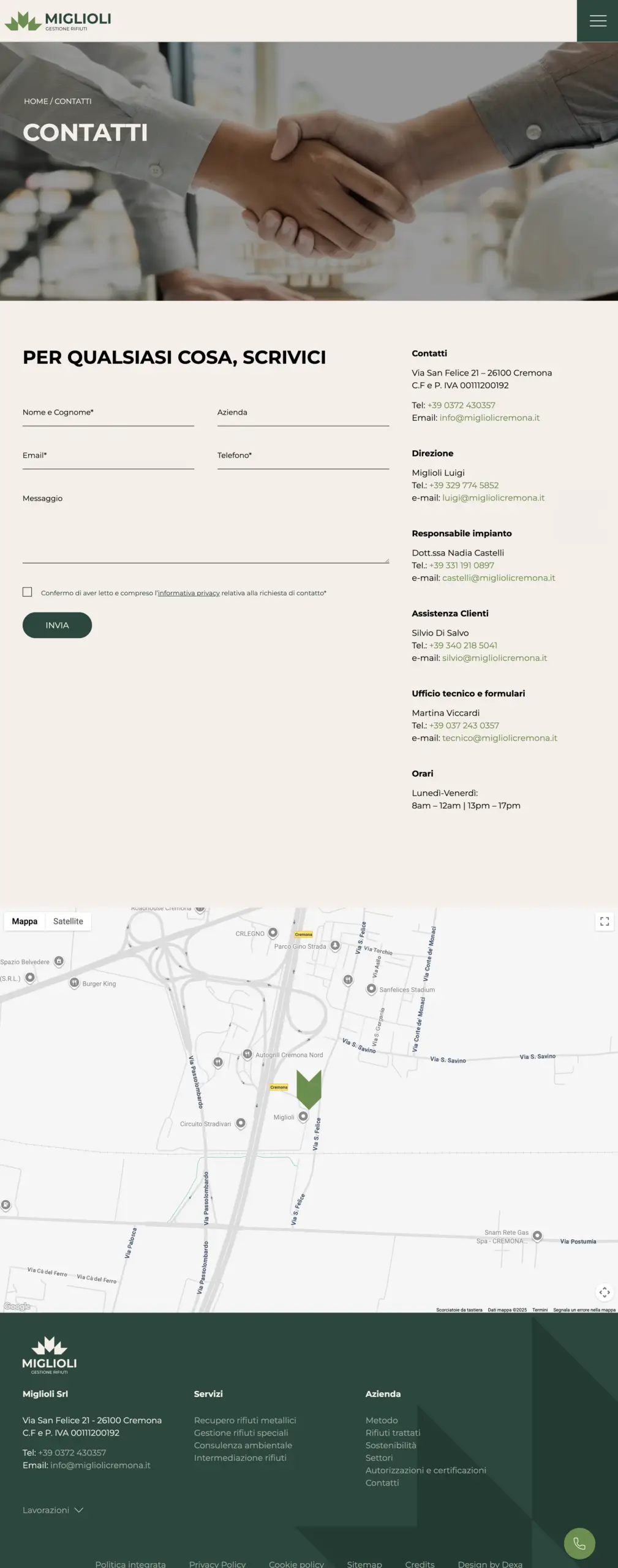 Il nuovo sito WordPress progettato per Miglioli si distingue per un design pulito e un’interfaccia intuitiva. La struttura è stata ottimizzata per rendere facilmente accessibili le informazioni sui servizi principali: recupero di materiali ferrosi e smaltimento di rifiuti speciali. In pochi clic, l’utente può orientarsi tra le proposte dell’azienda e ottenere informazioni chiare e complete. Ecco su cosa abbiamo puntato: perché chiarezza e completezza sono due delle qualità principali che l’azienda offre, insieme alla professionalità di chi sa che lavorare nel settore dello smaltimento dei rifiuti significa rimanere sempre aggiornati sui cambiamenti delle normative e, soprattutto, garantire la massima affidabilità.